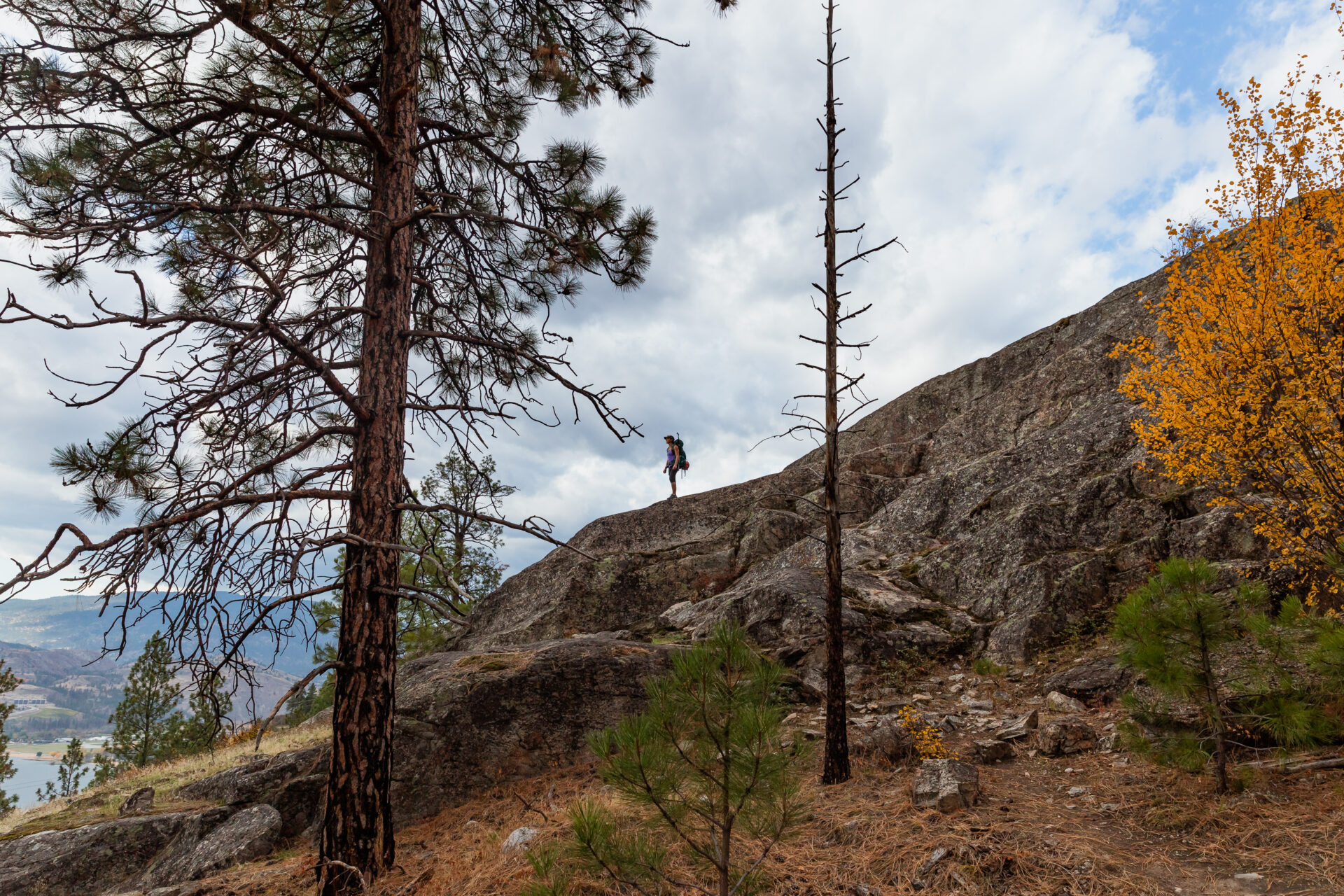 For a longer and more adventurous hike, check out Skaha Bluffs Provincial Park. Known for its rugged cliffs and rock formations, the park’s trails reward you with sweeping valley views that are especially dramatic against the backdrop of autumn foliage.