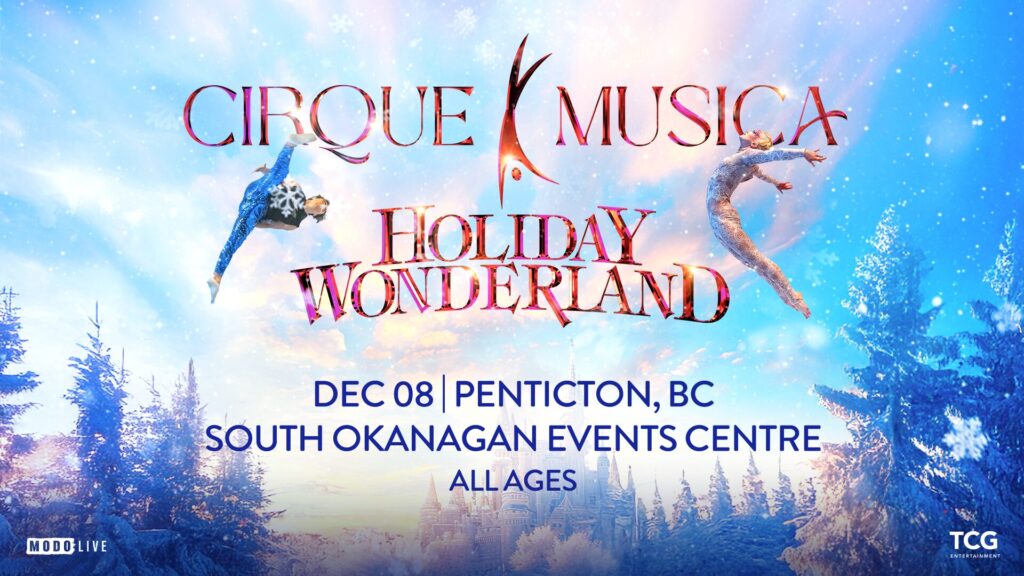 Cirque Musica Holiday Wonderland will stop at the South Okanagan Events Centre (SOEC) in Penticton, BC, Canada on Monday, December 8th, 2025. Tickets for the Penticton date go on-sale to the general public on Saturday, October 11th at 10:00AM and can be purchased online at www.ValleyFirstTix.com or in person at the Valley First Box Office at the SOEC.