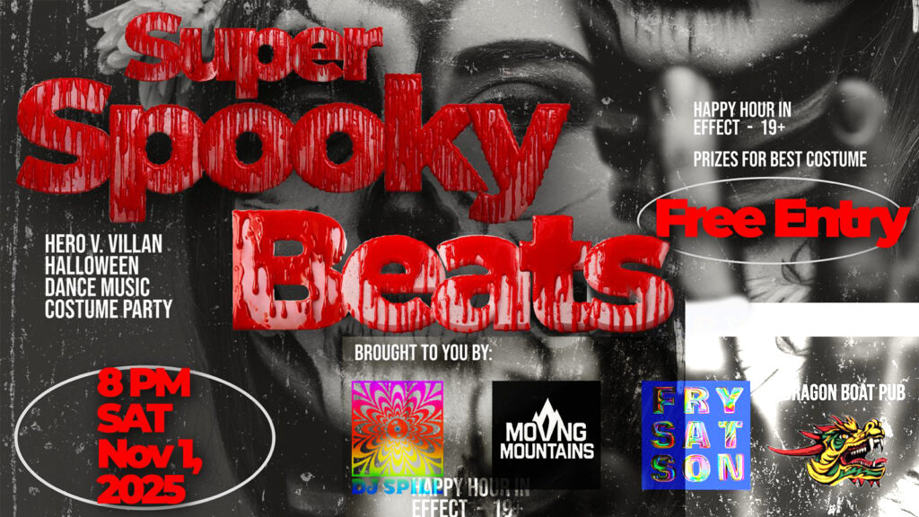 Rip it up at Dragonboat Pub Halloween Weekend with DJ FRYSATSON MOVING MOUNTAINS + SPILL.