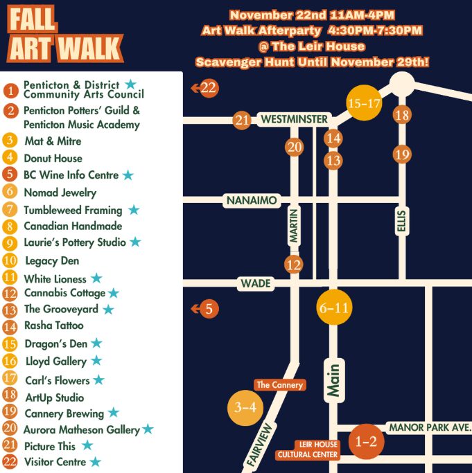 22 venues will be taking part in the annual Penticton Spring Fall Walk this November 22nd, starting at 11:00 AM and going to 4:00 PM.