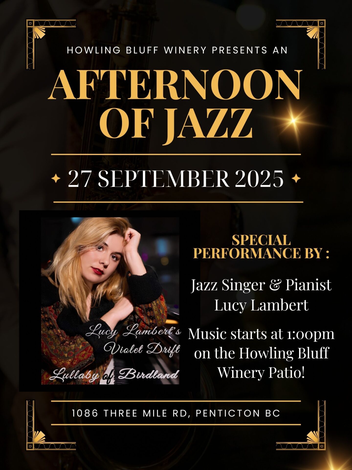 Join us in welcoming Lucy Lambert, a Jazz Pianist and Singer for an afternoon concert on our patio at Howling Bluff.
