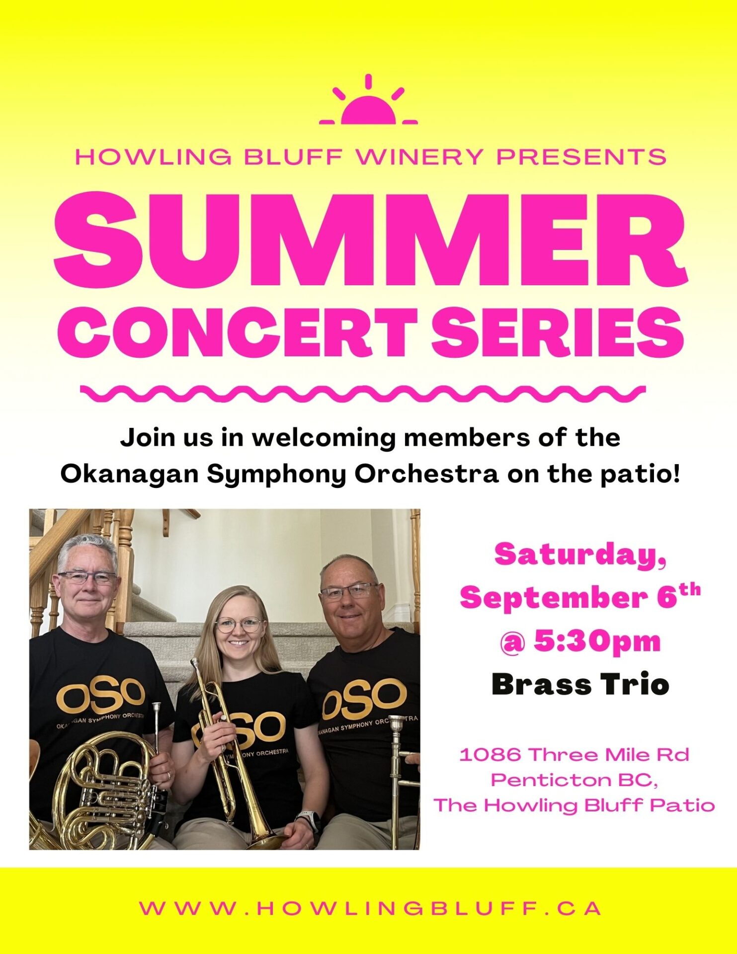 Join us in welcoming members of the Okanagan Symphony Orchestra for an evening concert on our patio at Howling Bluff.