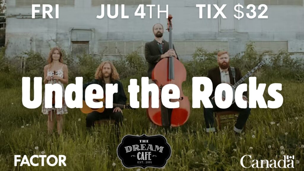 Under the Rocks is an energetic young string band based out of British Columbia, Canada. The band has been together since 2016, but started as a duo years earlier. Comprised of Chris Baxter (Banjo/Mandolin), Jordan Klassen (Guitar), Drew Schulz (Bass) and Chloe Davidson, a 3-time Provincial Fiddle champion and Canadian Masters Competitor.