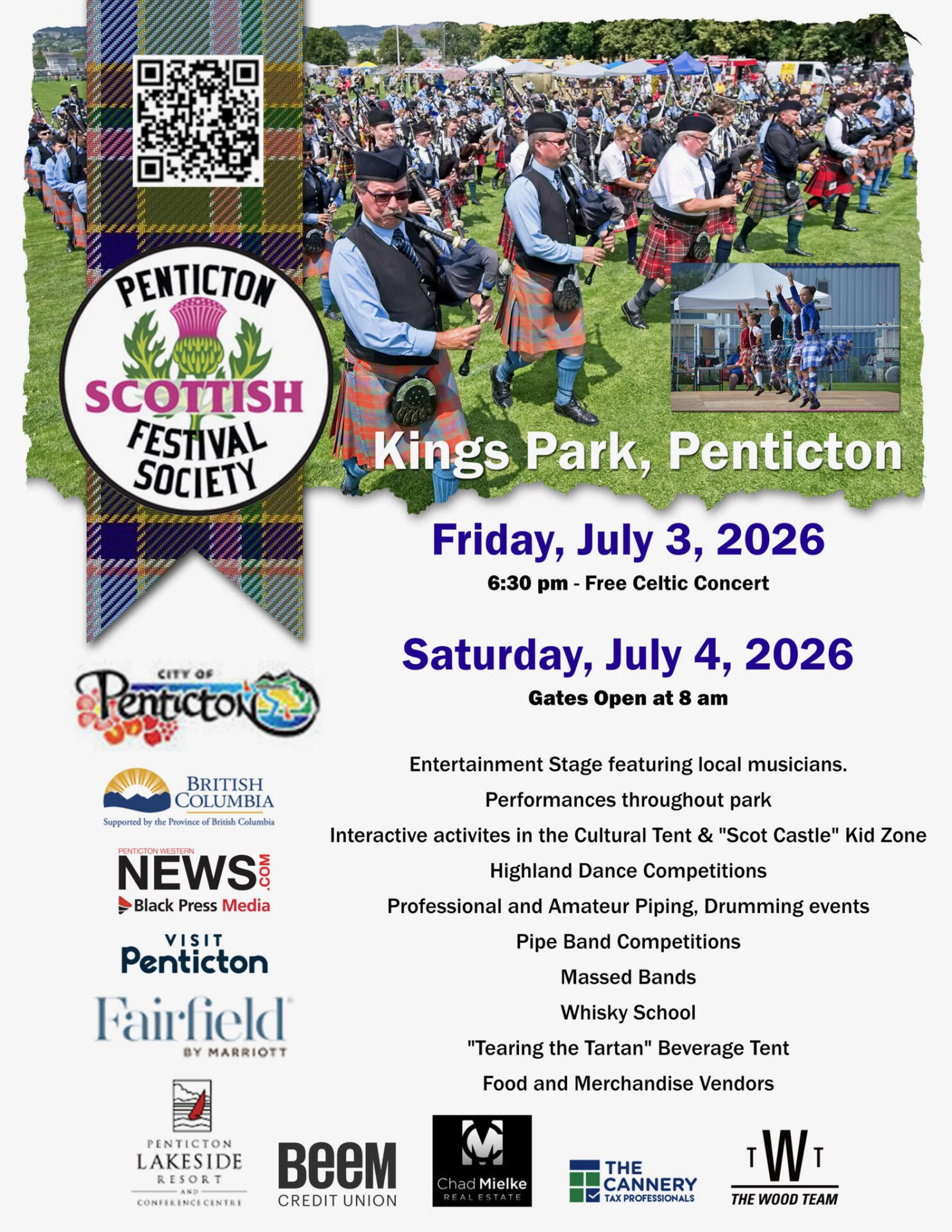 The Penticton Scottish Festival is a unique event that combines traditional Scottish Highland Games of musical and athletic competitions with Celtic cultural entertainment and family fun.