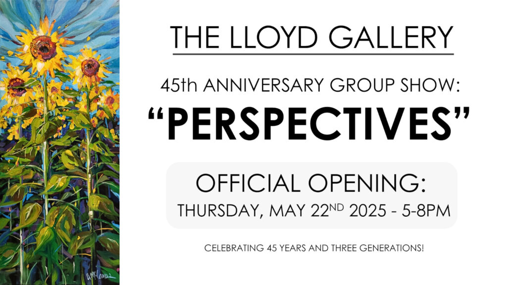 UPCOMING! The Lloyd Gallery is celebrating our 45th anniversary this May! Our official opening is next week Thursday night (May 22nd, 2025) from 5-8PM, so be sure to stop by for food, drink and celebration!