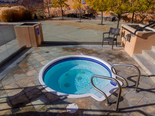 - A 25-meter outdoor pool surrounded by a massive sun deck and an all-season hot tub.
