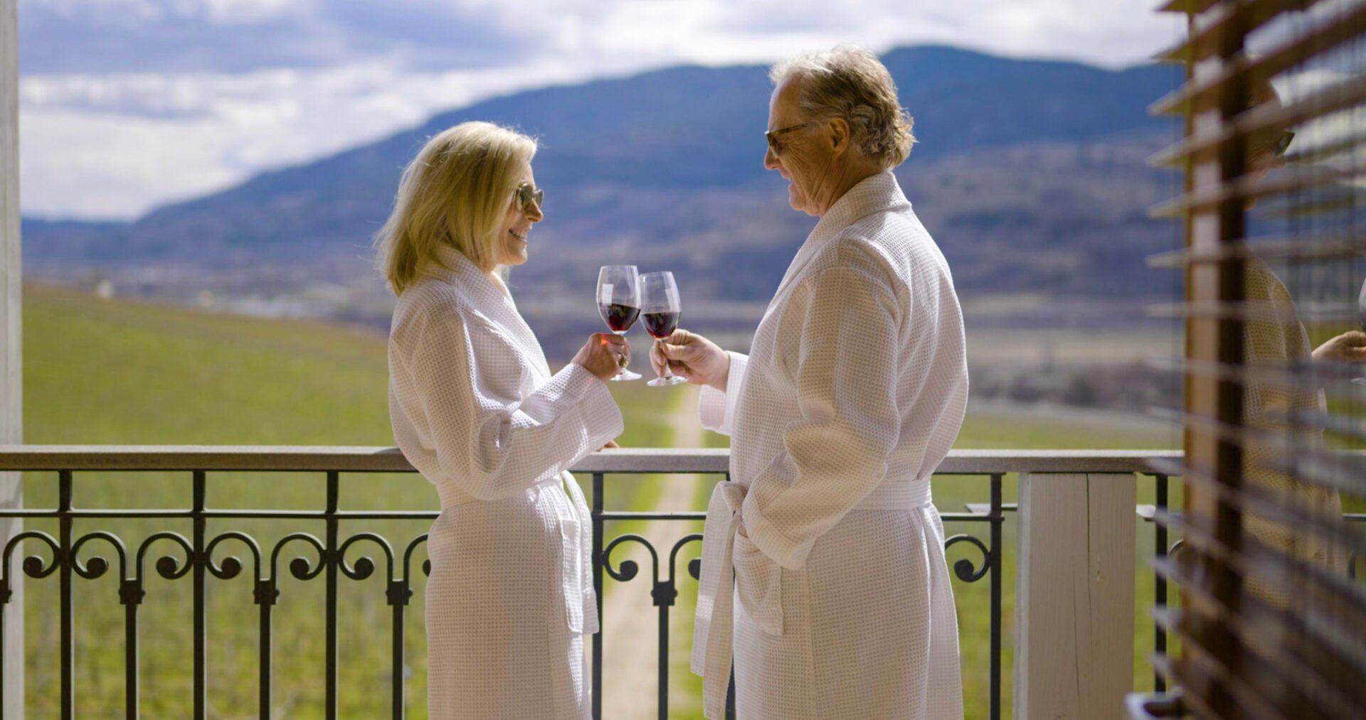- The vast Meritage Suite is the perfect “mix” for longer stays, honeymoons and Executives. Complete with a private elevator, gourmet kitchen, two bedrooms, two baths and private decks, this 1200 sq ft suite is your vineyard chateau. You are on top of the world.