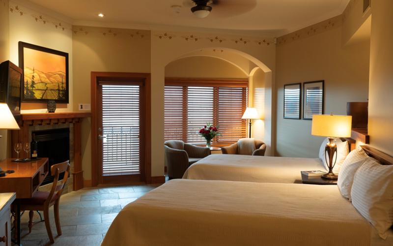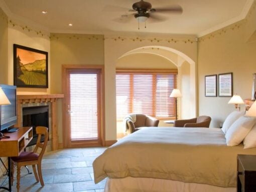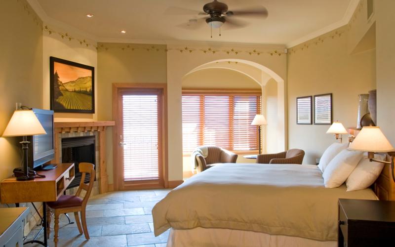 - Ten deluxe, spacious rooms with intimate fireplaces and private decks rise above the lush vineyard. “A room with a view” has been taken to the next level.
