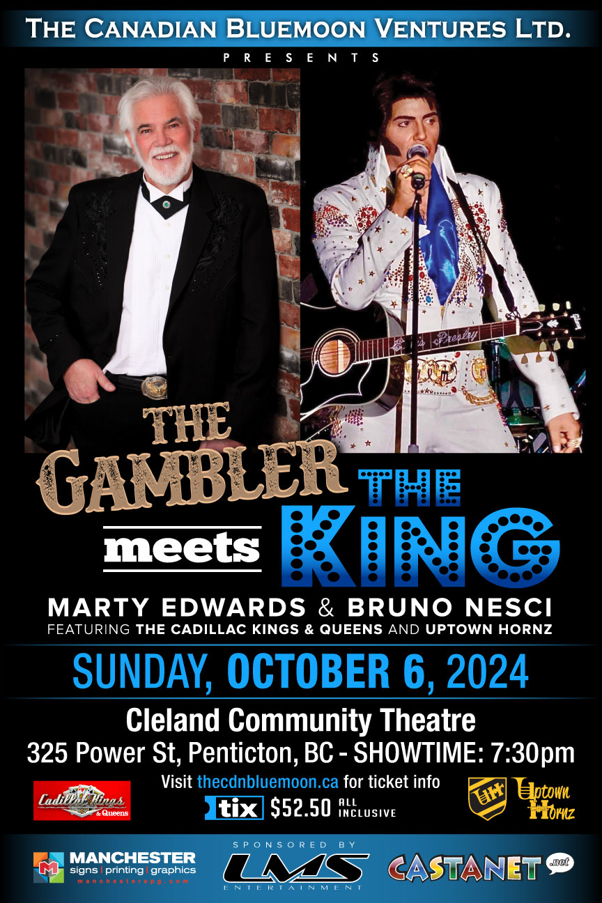 Join us for an unforgettable evening of music as Marty Edwards and Bruno Nesci bring Kenny Rogers and Elvis Presley together for the first time. Hear many of your favorite songs.