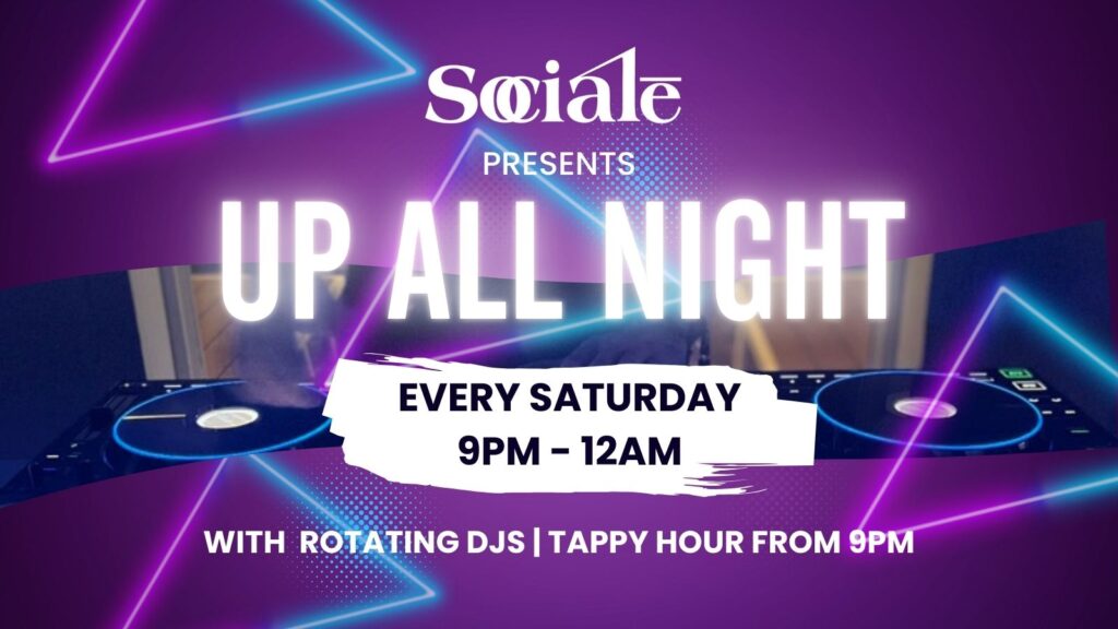 Don’t miss out on the best Saturday night party in town! Grab your crew and keep the energy going—because at Sociale, we’re Up All Night!
